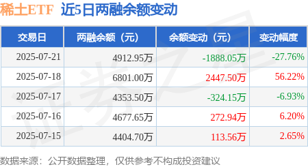 本站消息,7月21日,稀土ETF(516780)融资买入1422.29万元,融资偿还3310.34万元,融资净卖出1888.05万元,融资余额4912.95万元。